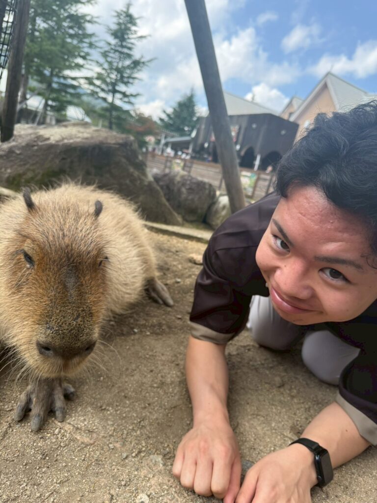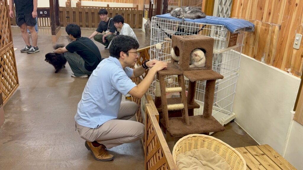 1日目は、まず「那須どうぶつ王国」へいきました。かわいい動物たちとふれあいながら、みんな自然と笑顔になりました。 思いがけない動物のしぐさに驚いたり、写真を撮ったり、癒やしのひとときを満喫しました。
