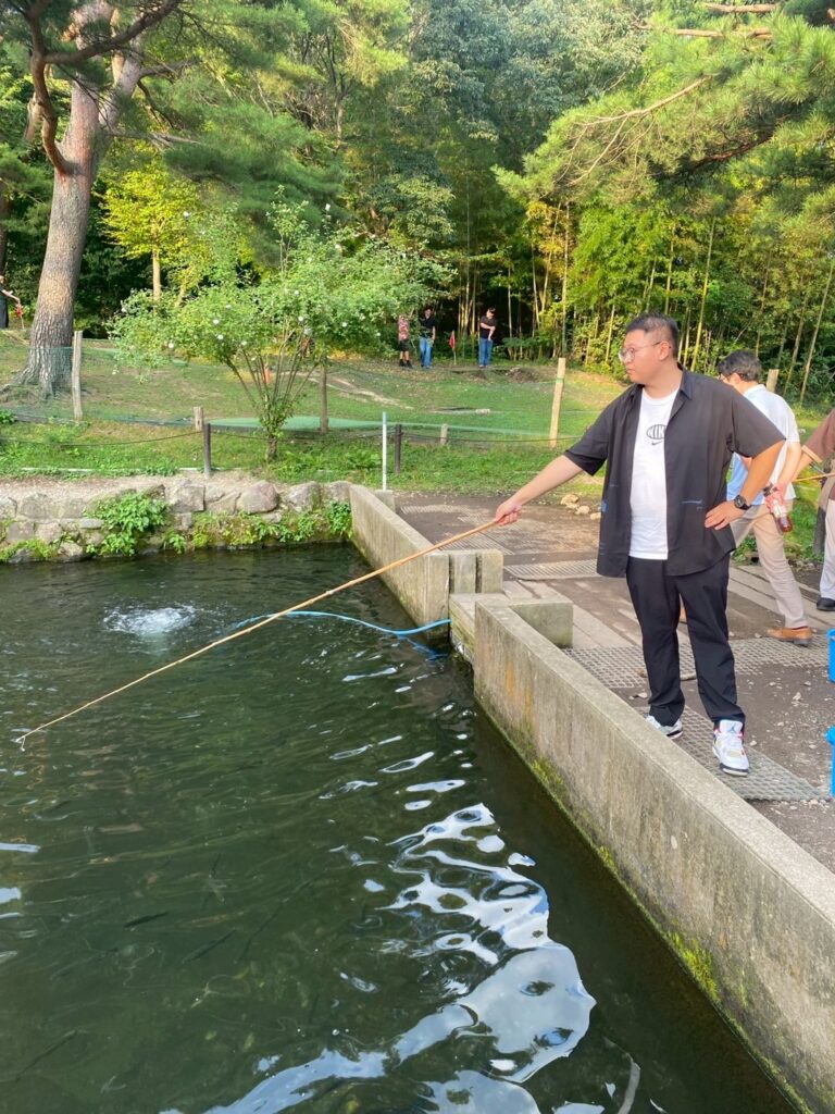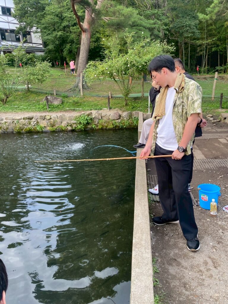 夕方は、近くの釣り堀で夕食の食材をゲット!みんな真剣な表情で釣りに挑戦し、釣れたときは歓声があがりました。