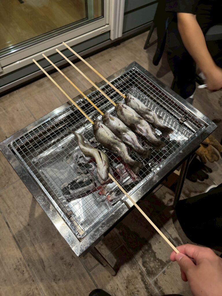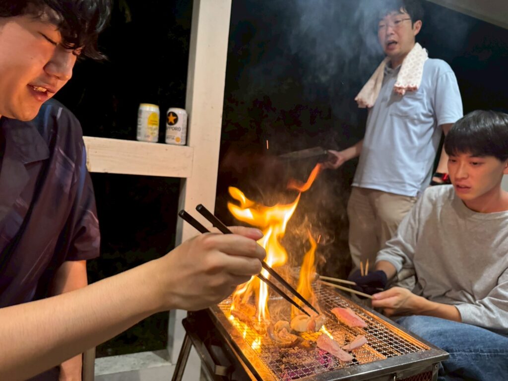 夜はコテージに戻って、お楽しみのバーベキュータイム!自分たちで釣った魚を焼き、美味しい料理と笑い声が絶えない夜となりました。