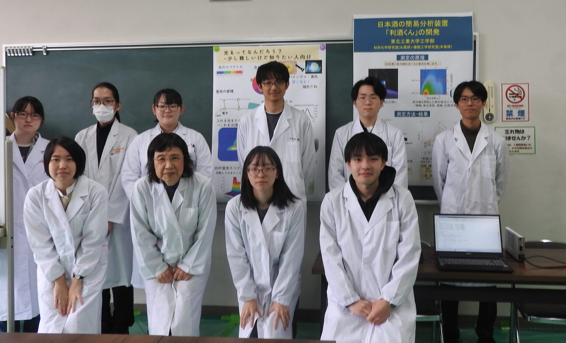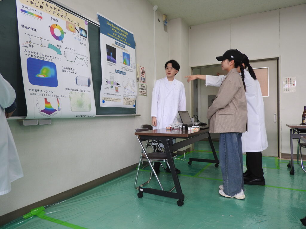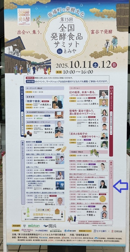 2025年10月12日(日)に富谷中央港民会において開催された第15回全国発酵食品サミット in とみやにおいて、共同研究を行っている本学応用化学課程丸尾容子先生がワークショップを開催されました。そのワークショップにおいて、共同開発を進めている簡易日本酒分析装置「利酒君(ききざけくん)」のデモ展示を、本研究室4年の橋本怜旺くんが担当しました。